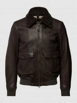 Die Lederjacke von Blauer USA ist aus einem Leder-Mix gefertigt und gerade geschnitten. Sie zeigt sich im unifarbenen Design mit Label-Patch und seitlichen Eingrifftaschen.