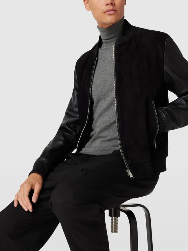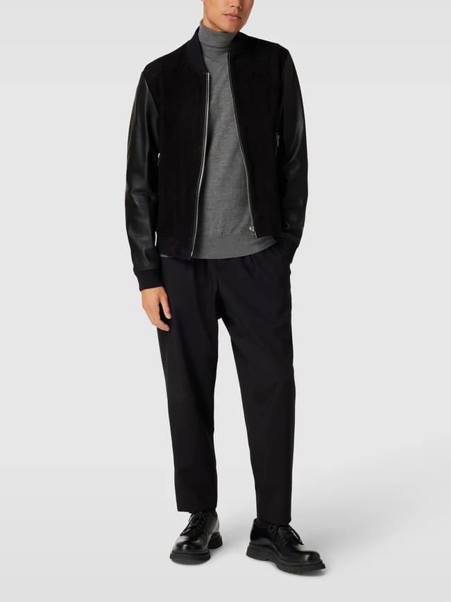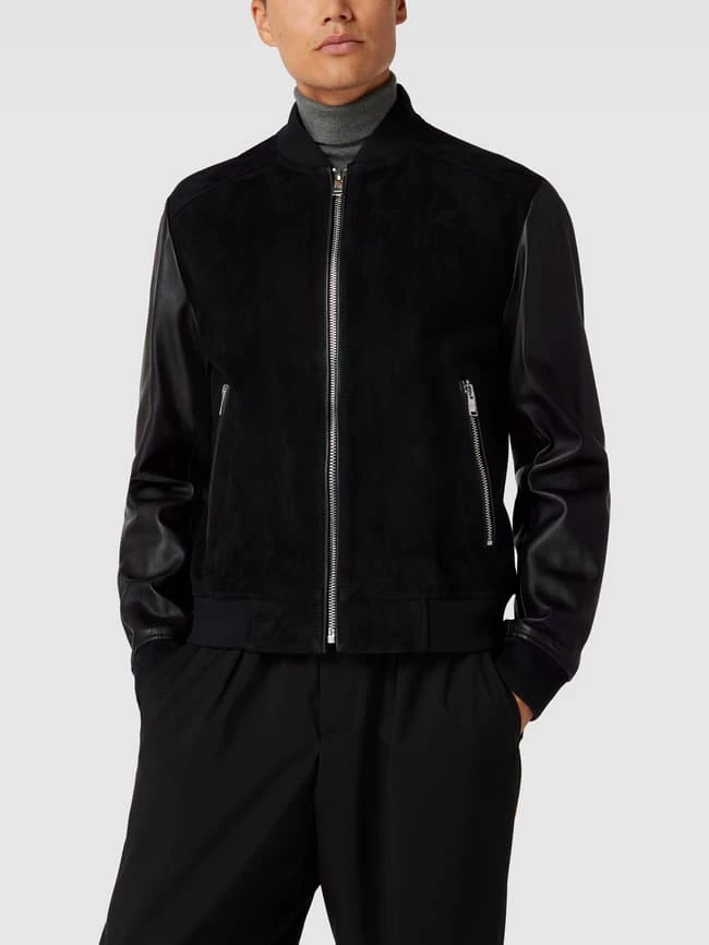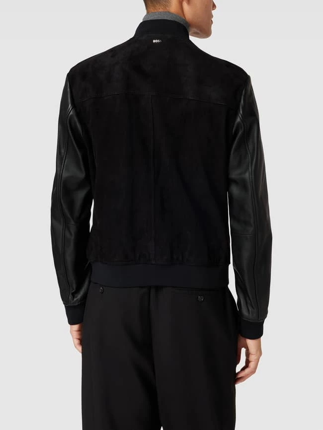 Aktion ? BOSS Lederjacke Mit Geripptem Rundhalsausschnitt Modell ‘Malbano’ – Schwarz ?