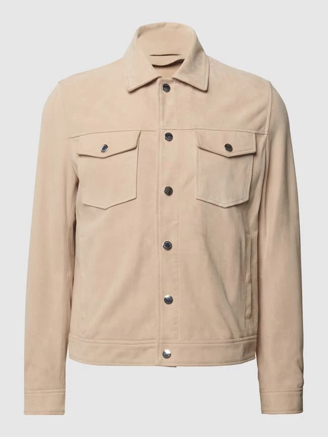 Neu ? BOSS Lederjacke Mit Knopfleiste – Beige ?