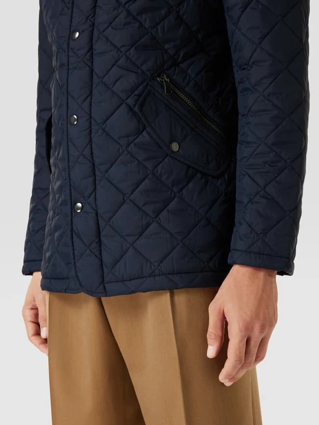 Die Steppjacke von Christian Berg Men ist aus strapazierfähigem Material gefertigt und gerade geschnitten. Sie kommt mit Stehkragen und Knopfleiste mit Reißverschluss.