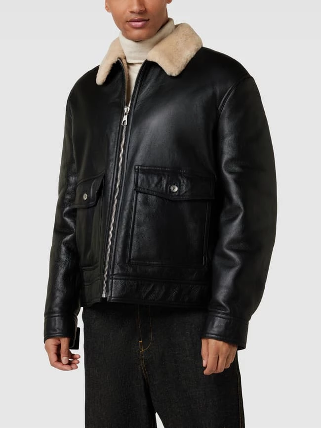 Brandneu ❤️ Drykorn Lederjacke Mit Seitlichen Pattentaschen Modell ‘Garano’ – Schwarz ?