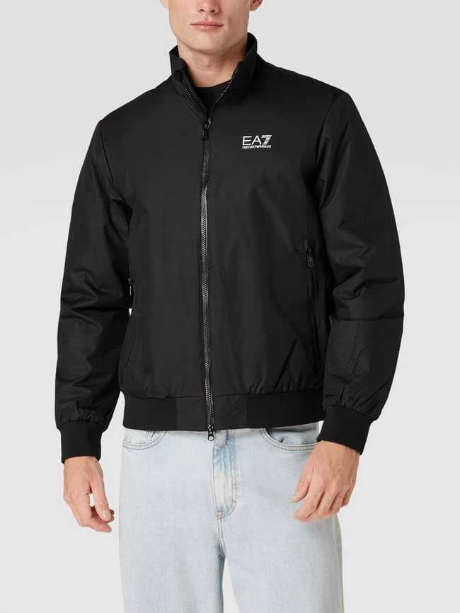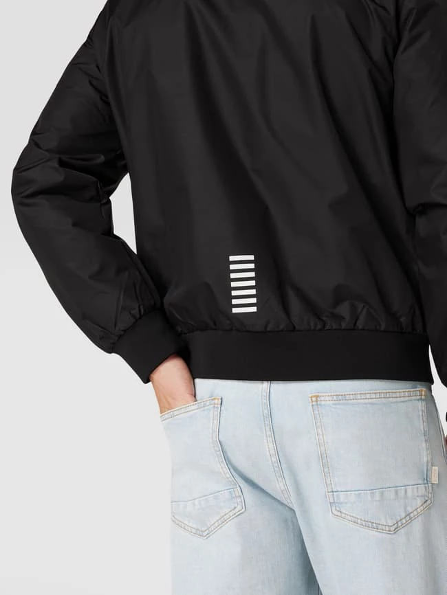 Die Jacke von EA7 Emporio Armani ist aus strapazierfähigem Material gefertigt und gerade geschnitten. Sie kommt mit Stehkragen, Label-Print und gerippten Abschlüssen.