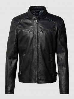 Schlussverkauf ? Gipsy Lederjacke Im Biker-Look – Dunkelblau ⭐