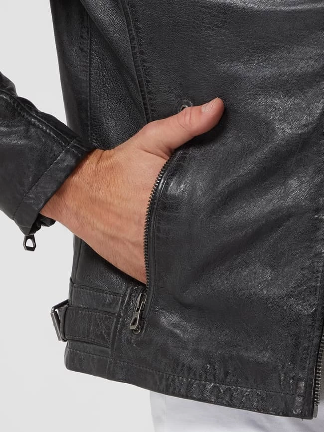 Die Lederjacke von Gipsy ist aus echtem Schafsleder gefertigt und im Regular Fit gehalten. Sie kommt mit abnehmbarer Kapuze, Reißverschlusstaschen und Ziersteppungen.