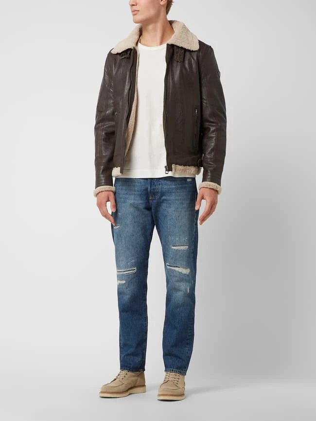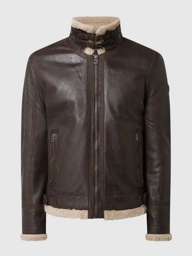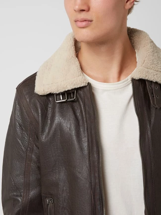 Die Fliegerjacke von Gipsy ist aus Schafsleder gefertigt und regulär geschnitten. Sie kommt mit Umlegekragen, Reißverschlusstaschen und Futter aus Webpelz.