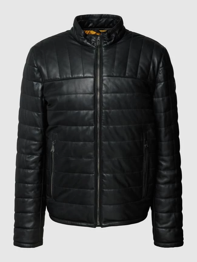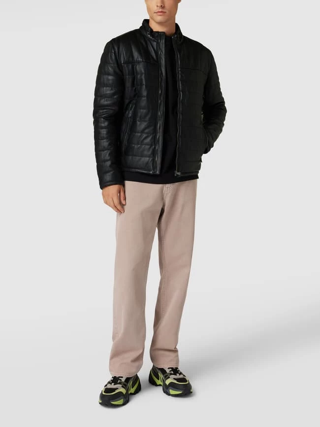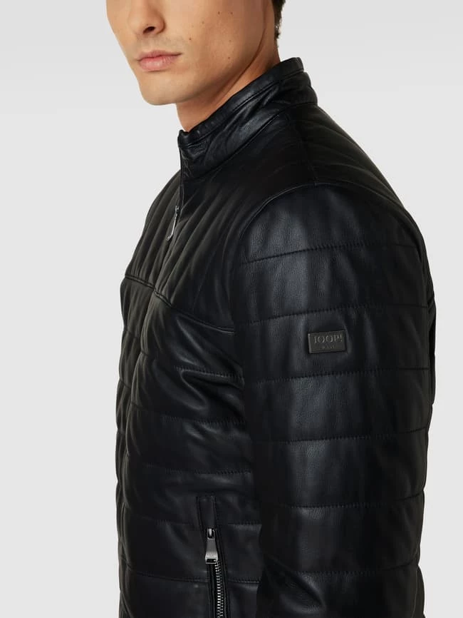 Die Lederjacke von JOOP! ist aus echtem Leder gefertigt und gerade geschnitten. Sie zeigt sich im unifarbenen Design mit Label-Details und seitlichen Eingrifftaschen.
