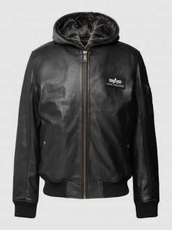 Aktion ? Alpha Industries Lederjacke Mit Label-Details – Schwarz ?