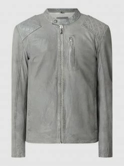 Am billigsten ? Freaky Nation Lederjacke Mit Stehkragen Modell ‘Kiano’ – Hellgrau ❤️