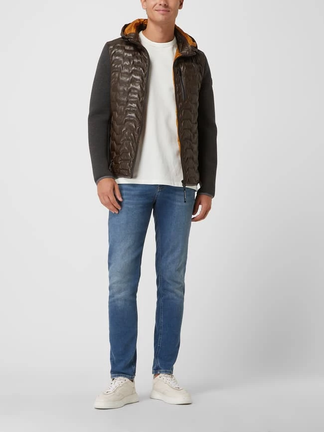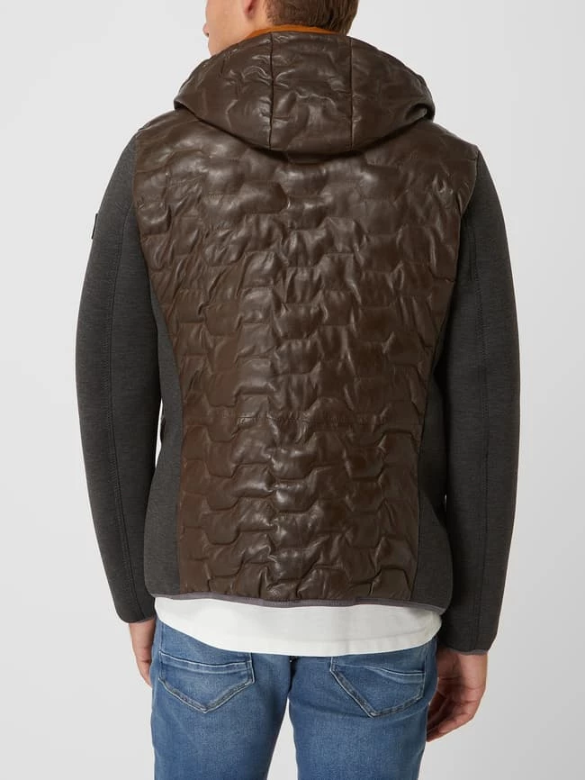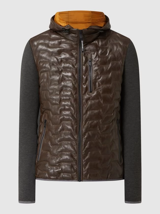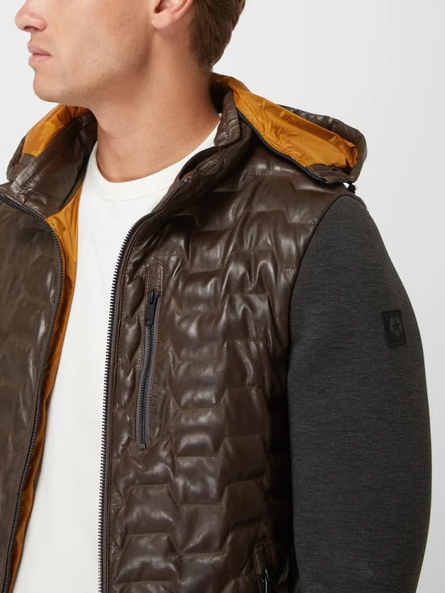 Die Lederjacke von Milestone ist aus echtem Lammleder gefertigt. Sie kommt in gerader Passform mit abnehmbarer Kapuze, Kontrasteinsätzen und Wattierung.