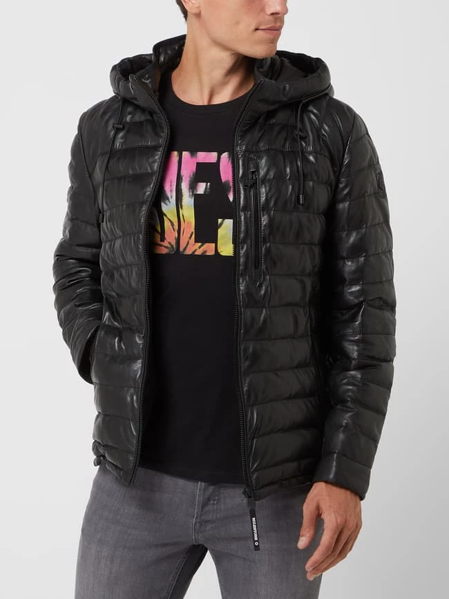 Angebote ? Milestone Lederjacke Mit Kapuze Modell ‘Trento’ – Schwarz ?