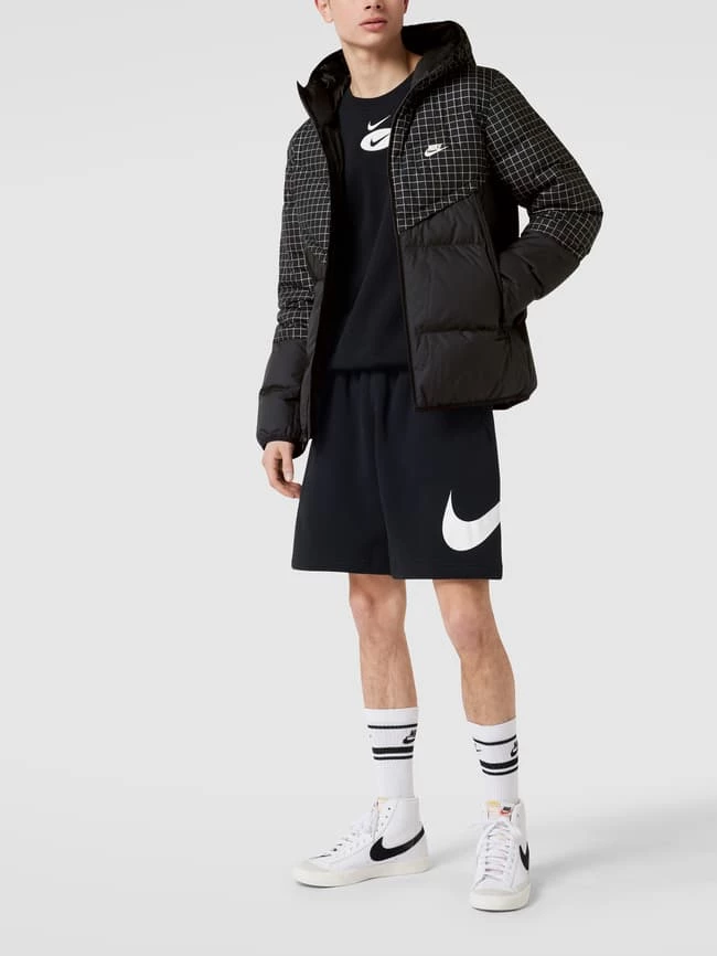 Die Daunenjacke von Nike ist aus strapazierfähigem Material gefertigt und gerade geschnitten. Sie kommt mit Kapuze, Reißverschluss, Kontrastbesatz mit Muster, Reißverschlusstaschen sowie Logo-Print.